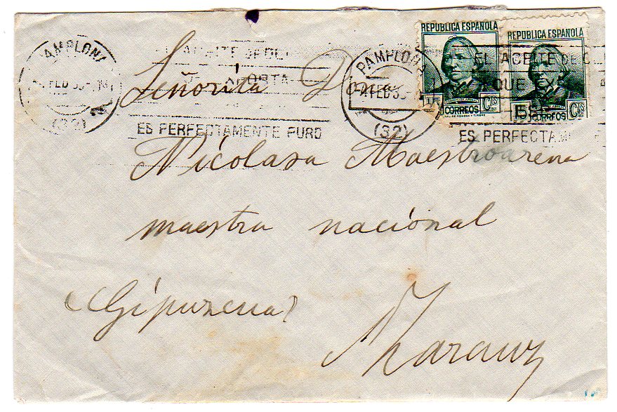 Carta de Pamplona a Zarauz, con rodillo de Pamplona