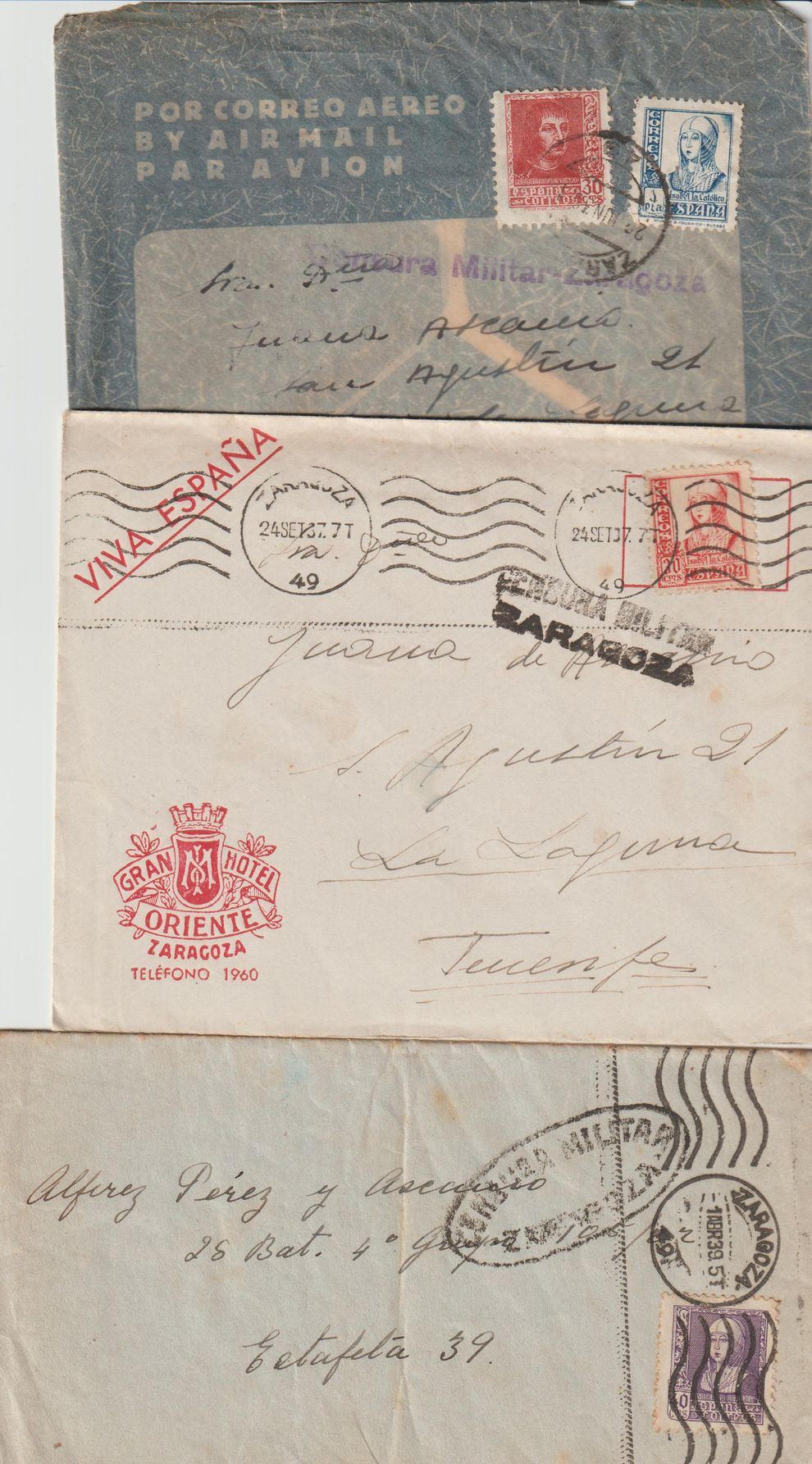 Tres cartas con marcas de censura de Zaragoza. Muy bonitas