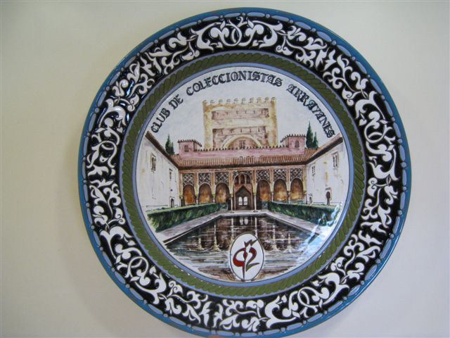 Precisamente, este Club, con motivo de la Exposición Granada 92, entregó a la Organización de la misma un premio especial consistente en un gran plato de cerámica (de casi 60 centímetros de diámetro, vamos como un lebrillo mediano), diseñado por el propio Presidente del Club y que reproduce una vista del Patio Arrayanes de La Alhambra.
