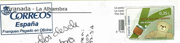 Hace dos días (ya siento el retraso pero no encontré momento para escanear) me llegó la segunda postal de Granada desde el buzón-león de la Alhambra... sigue siendo un poco diferente a la cancelacion de la agencia colaboradora mostrada en posts anteriores