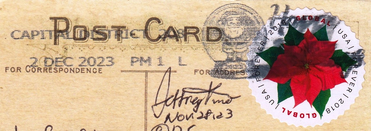 - "HAPPY HOLIDAYS". Ilustración Papá Noel en bola de cristal. Diciembre 2023 Esta tarjeta está remitida desde Washington D.C., pero en los listados no aparece este SCF CAPITAL DISTRICT con tal denominación. No se aprecia bien el numeral, quizás podría ser el 208.