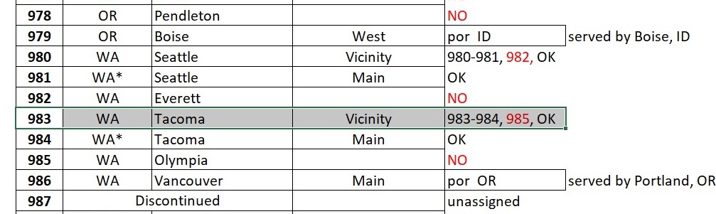 Sin embargo todos los ZIP CODE de Seattle, empiezan por 981, con excepción de algunos pequeños núcleos que empiezan por 980.