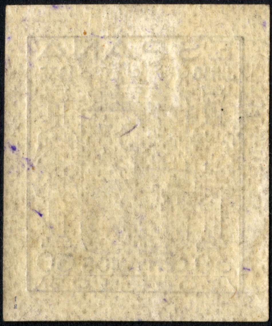 Su dorso, tambien con goma "original" del falsario. Tampoco está reengomado y por eso conserva el fijasellos puesta por quien le cayó esta "perla" :arrow:
