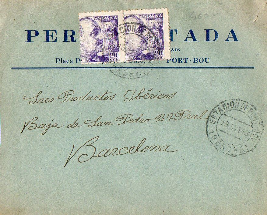ESTACION DE PORT-BOU / 18-0CT-43 / (GERONA). TIPO 1. 31 cm.
