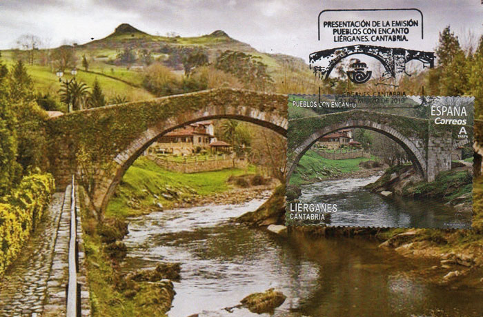Sobre una tarjeta de principios del siglo XX, un sello de los años 70 y otro actual.