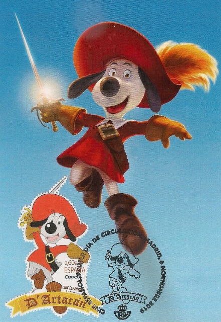 Emisión: Cine Español. D'Artacán. 06/11/2019. Offset. Estucado, engomado, fosforescente. Emitido en mimipliego.