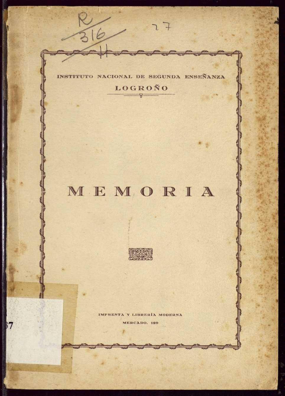 Rebuscando por la red, he encontrado al menos un pequeño dato que cabe consignar aquí y sumar a los otros pocos que se conocen, y es que Blas Pérez Irujo fue profesor suplente de dibujo en un Instituto durante el curso de 1926-27. ¿Llegaría a dar alguna clase de dibujo? ¿Qué diría a sus alumnos si así fue? ¿Acaso, habiendo aprobado unos años antes la oposición de delineante, fue un tímido intento de dedicar su vida a la enseñanza, si no incluso una manera apacible de esperar la quizá ansiada oportunidad artística, o simplemente se trató de un trabajo extra sobrevenido? Su nombre y apellidos aparecen tal cual en una Memoria de un Instituto Nacional de Segunda Enseñanza de Logroño, y dado que en esta ciudad nació Irujo en 1894 (Fernando Aranaz del Río, Nombres para la filatelia y la historia postal española), o en 1896 (Juan Manuel Cerrato), todo indica que no pudo ser sino él.