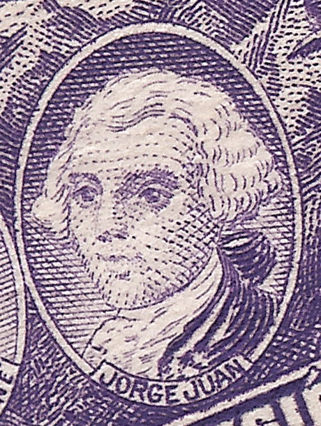 Un sello que suele pasar desapercibido es el de Ecuador emitido en 1936 dedicado a la expedición que, encargada por Felipe V se ocupó de medir el meridiano terrestre, y en el que participaron Jorge Juan (Novelda 1713 - Madrid 1773) y Antonio de Ulloa (Sevilla 1716- Isla de Leon 1785). En el sello violeta de 20 ctvos aparecen los dos marinos junto a La Condamine