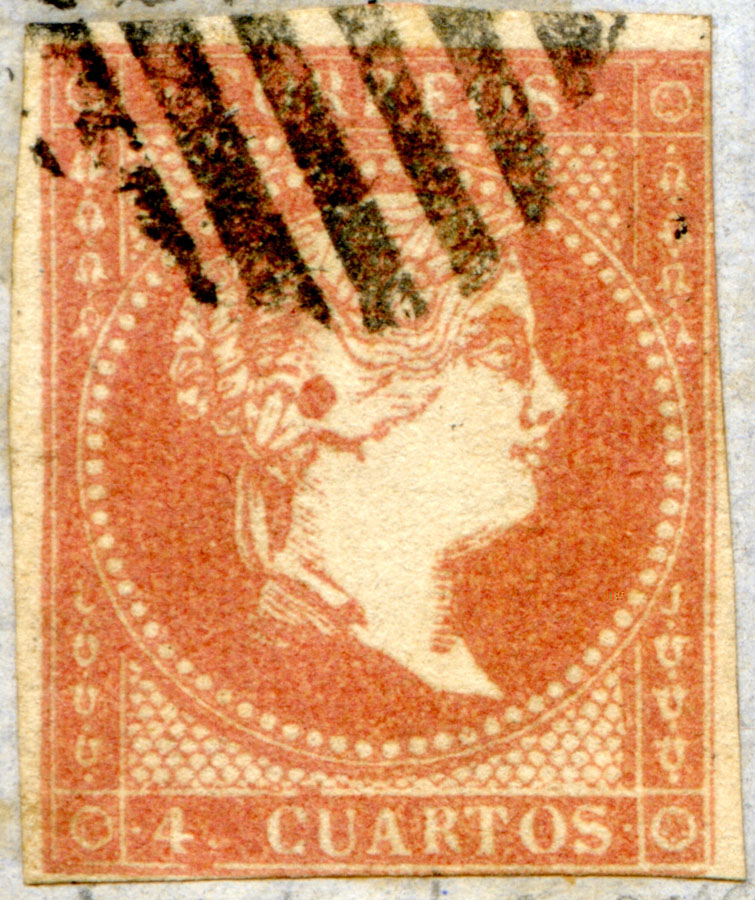 Por lo poco que se puede ver el primero es del tipo II, y se encuentra circulado en frontal de Málaga a Cádiz de 29 de abril de 1856, o sea, que el defecto venía desde bastante el principio.