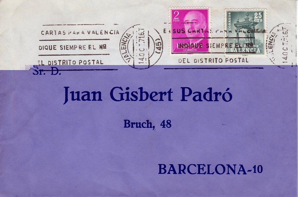 Os envío el entero postal de la emisión de 1962 con el matasellos especial de la Reunión de la Real Sociedad Española de Física y Química que se celebró en Pamplona en 1967. Vá dirigido precisamente a mi recordado amigo Luis Gómez.