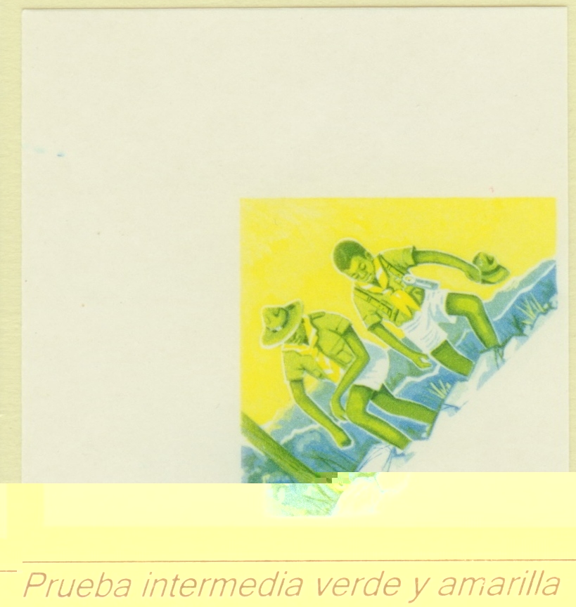 Algunas muestras de lo que formaba parte del archivo Fournier. Claro, los países que le encargaban los sellos a Fournier no eran países serios. Y los sellos eran de colorines.. En este mensaje podemos ver como con los tres colores básicos: amarillo, azul y magenta, se iba componiendo el nuevo sello, de acuerdo con el diseño realizado por el artista dibujante.