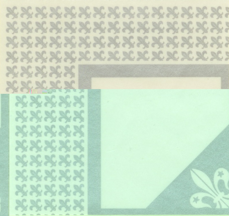 Luego se imprimía el negro, con los valores necesarios (en este caso, dos) Y posteriormente los bordes plateados y dorados... que no debían ser nada fáciles de conseguir.