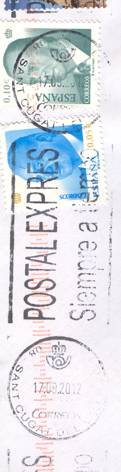 En el ínterin quedan los dos matasellos, con sus correspondientes marcas naranjas fluorescentes de encaminamiento.