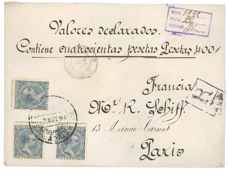 - Derecho de certificado para los paises de la Unión Universal de Correos (entre los que se encontraba Colombia): 25 céntimos.