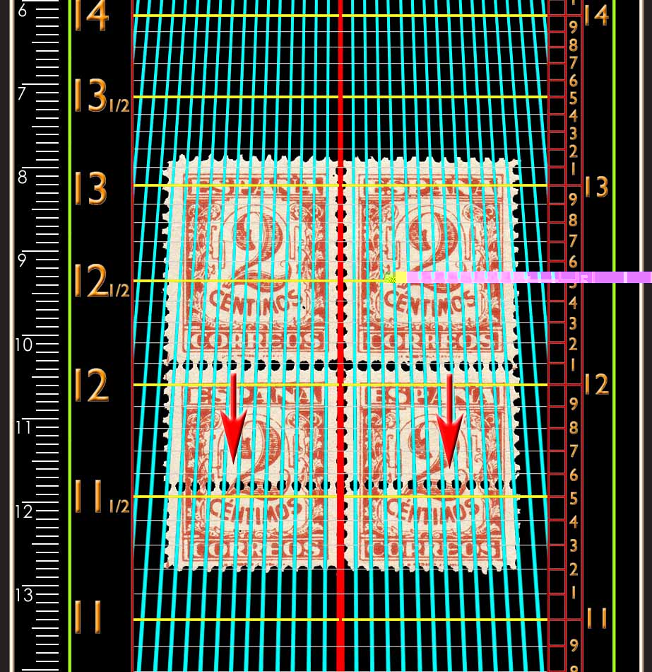 En el envio y al dorso dice textualmente: VARIEDAD DEL 2 CENTIMOS CON DOBLE TREPADO EN LOS SELLOS INFERIORES.