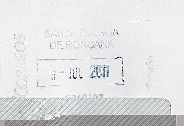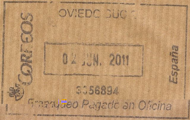 Ahora me encuentro con que la oficina, en un momento dado, modernizó la estampación de la marca, se deterioró el tampón o confeccionaron etiquetas para el caso de los envíos voluminosos o en donde era difícil estampar el tampón.