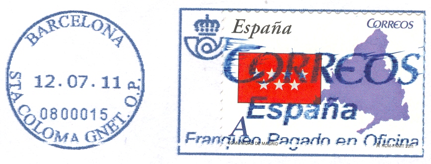 AF-107. BARCELONA / STA COLOMA GNET. O.P. / 12. 07. 11 / 0800015 / Azul