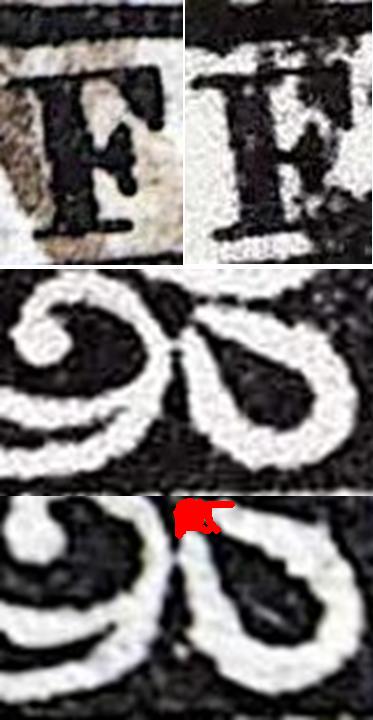 Este visible punto negro lo había percibido pero al carecer de otras piezas ... este #6-D042 forma parte de los "Tipos Definitivos localizados sin marcas de identificación" ...
