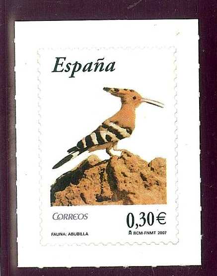 Otro sello que también me ha enviado con rareza incluida, no es que sea el sello el dorado, es una simple abubilla, auto-adhesivo del año 2007, y su rareza está precisamente en eso, en la goma, que no la tiene, es decir, al ser adhesivo, el sello si lo quitamos del cartoncillo donde viene, debería tener su goma para que se pueda pegar en el sobre, pues no, la goma se queda en el cartoncillo y el sello sale sin goma.