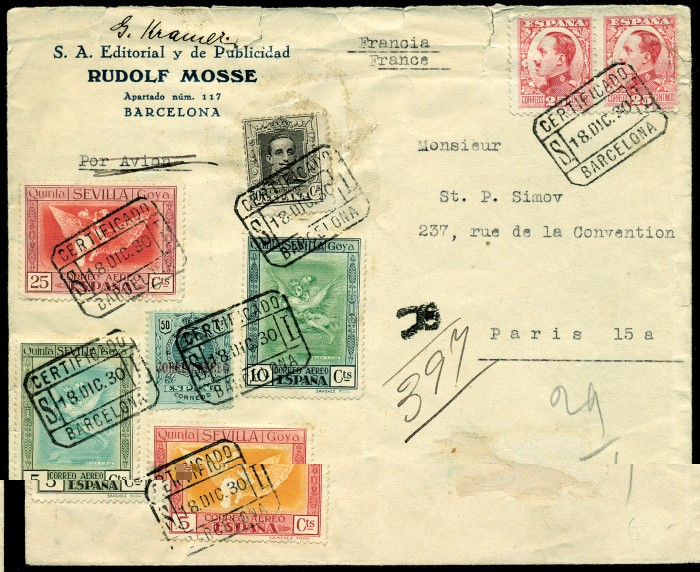 El adjunto 1930 Sevilla-Madrid. Correo certificado. Matasellos certificados Quinta de Goya Sevilla..jpg ya no está disponible