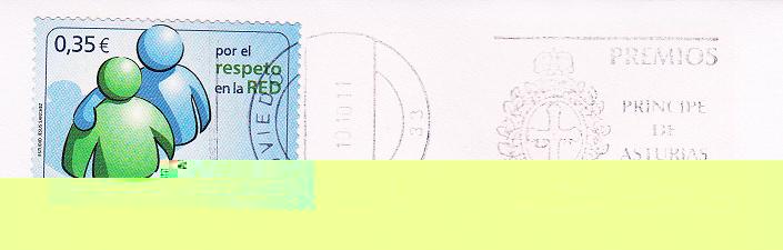 Bueno; pues hoy me ha llegado el sobre de Oviedo con el rodillo de los Premios Príncipe de Asturias 2011, y tal como bien dice IRIS, escaquean la tinta que es un primor. Y eso, que les indiqué en mi carta a los del C.T.A. de Posada de Llanes (Oviedo) que por favor los inutilicen cuando cambien la tinta nueva. Pero ¡Na de Ná!. Aunque ¡Menos dá una piedra!.