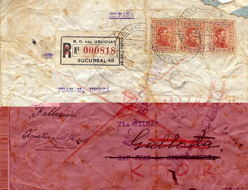 y el 11 regresa a Montevideo sin que se le aplique ningún matasellos más, de forma que sólo queda registrado su paso por Vizcaya.
