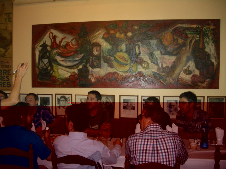El restaurante estaba en el sitio donde empiezan los locales de fiesta del centro. Yo me fui, los demás no se si algunos fuisteis al Quilombo (un antro peculiar de Barcelona donde se meten con la guitarra a cantar camciones populares y todo el mundo les sigue, hace un tiempo les dieron el premio al mejor mojito de Europa), ya nos contaran los nocturnos yo me tuve que ir, hubiera sido demasié pa el cuerpo.