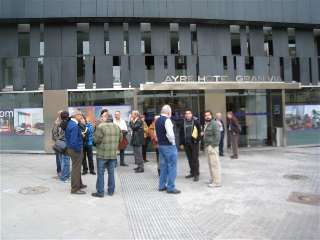 Aporto una imagen del sábado pasado, por la mañana, en la puerta del Ayre Hotel Gran Vía donde, después de desayunar, nos estábamos concentrando para dar el paseo en el autobús.
