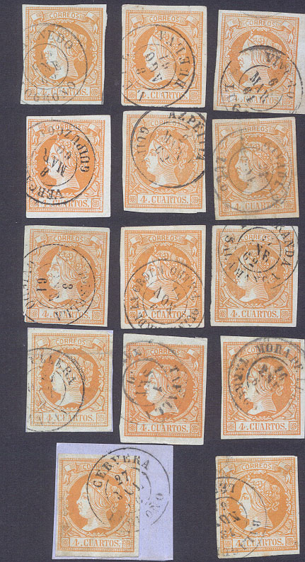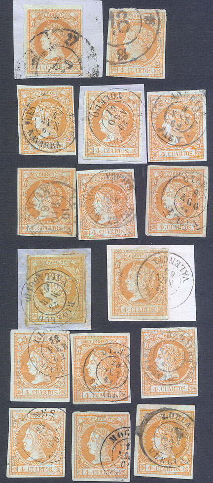 Alejandro, el sello 210 con el matasellos Carcajente - Denia, supongo que sabes que es un matasellos ambulante de la línea que llevaba ese nombre y no una cartería (pues ninguno de los dos topónimos es una provincia, y cada uno de ellos pertenece a provincias distintas), como algún comerciante he visto que creía (aunque, eso sí, lo ofertaba a una cifra astronómica, que seguro que tú no has pagado). No he entendido la nota al pie de la imagen ¿es fragmento o detalle de una carta completa?.