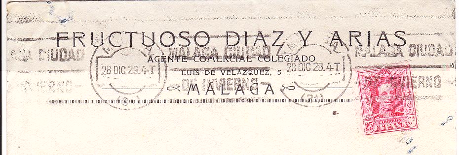 De la Ciudad de Málaga, os presento el rodillo que cataloga Gomis con el nº 854 "MALAGA CIUDAD DE INVIERNO" en el año 1928, y aunque éste que he adquirido es del 1929, también tengo conocimiento de haber circulado los años 30 y 32. Datos que supongo ya tendrá referenciados el amigo Baixauli en su estudio de los rodillos anteriores a la Guerra Civil.
