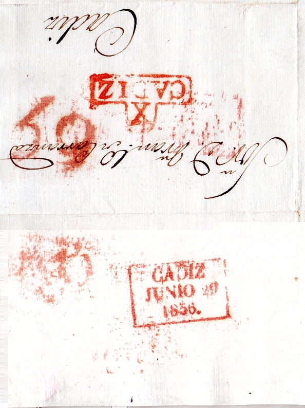 De cualquier forma si que parece que la marca subida por Manolo (Marduk), la que atribuye a Aguilar de la Frontera, a pesar de ser tremendamente similar a la de Andujar parece que pudieramos estar ante un nuevo cuño. Manolo nos ha presentado 2 cartas con origen en Aguilar de la Frontera con destino a Cádiz, aportando que dispone de alguna más con mismo origen y destino y que presenta la nueva marca.