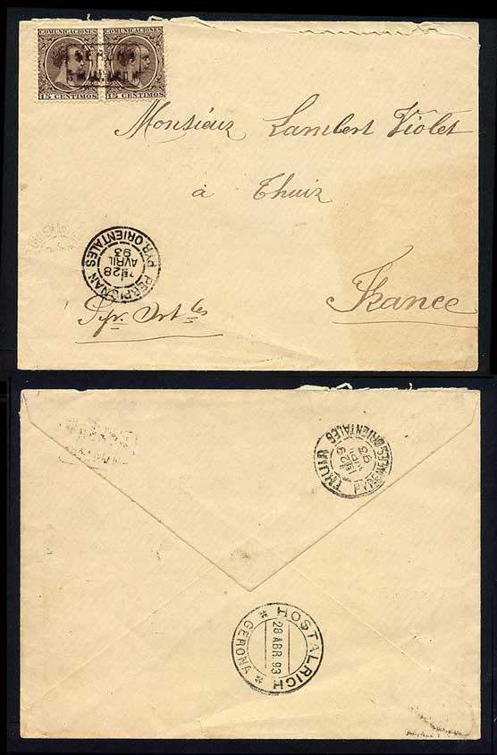 Mario, aprovechando que el "Pelón" pasa por Sevilla.....¿podrías aclararme por qué el siguiente sobre con sellos de Pelón para 25 cts. según correo ordinario a Francia, lleva el fechador sobre los sellos de 31 DIC 1896 y sobre el frente de 1 ENE 1897? ¿Se fue el empleado de noche de fin de año y se olvidó enviarla el 31 DIC? ¿Existe otro motivo? Gracias de antemano. :D :D