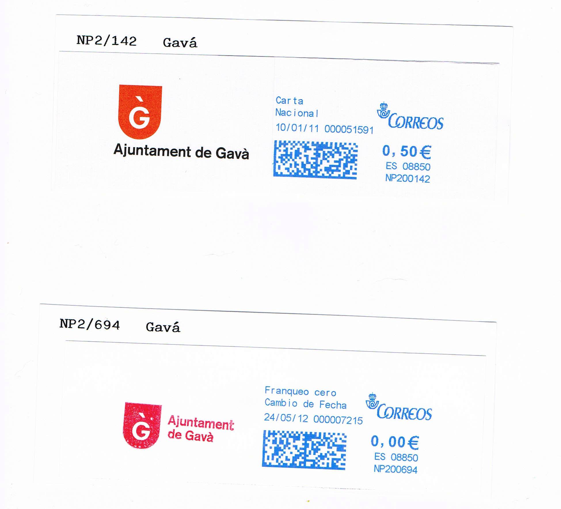 La máquina del Ayuntamiento de Gavá.El primero sin logo y el logo del nº actual es de un cuño de mano