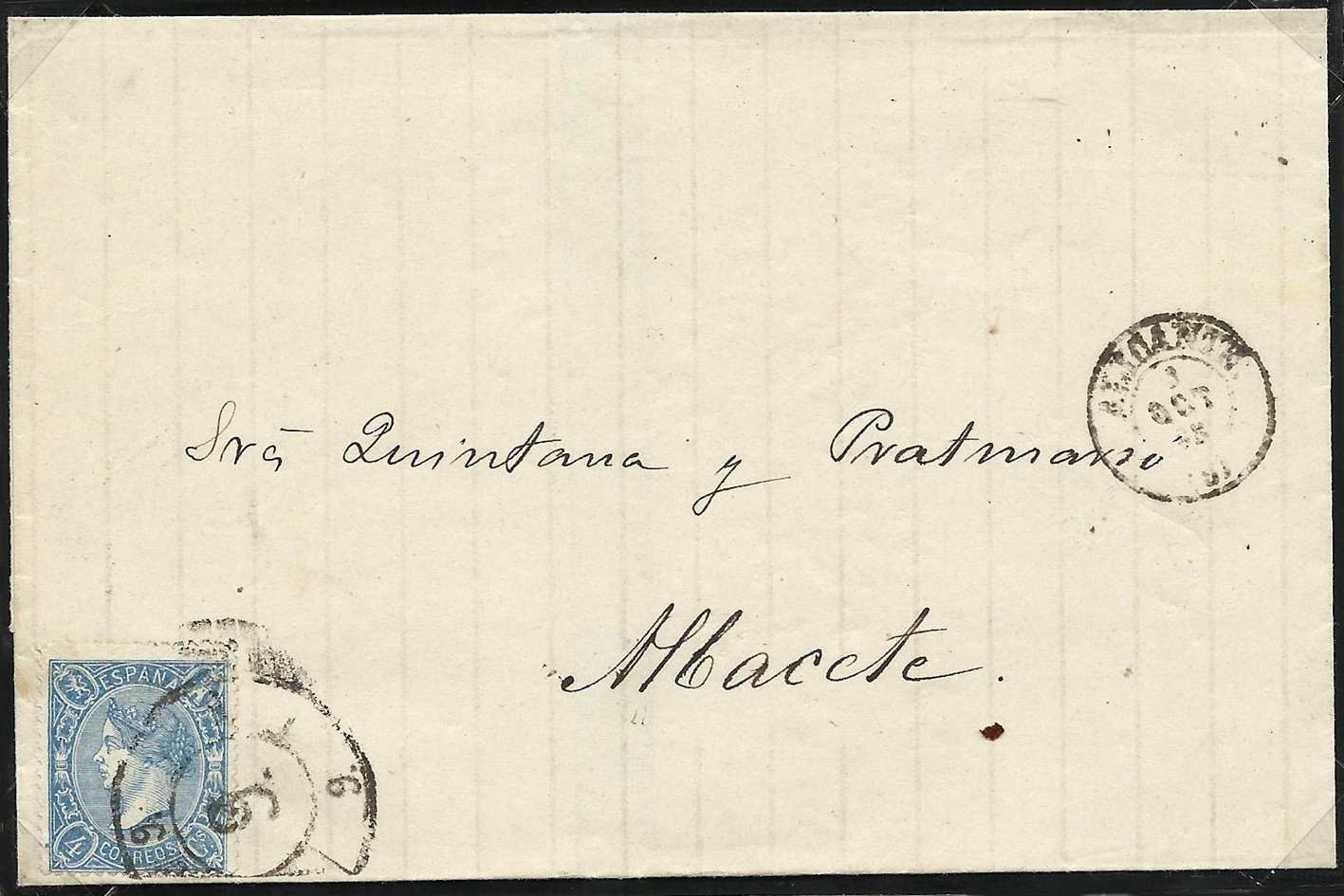 Fabulosa pieza Menaza y mi Enhorabuena y admiración. Otra demostración de que no solo Madrid empezó a usar el matasellos antes de día 15 de octubre de 1858.