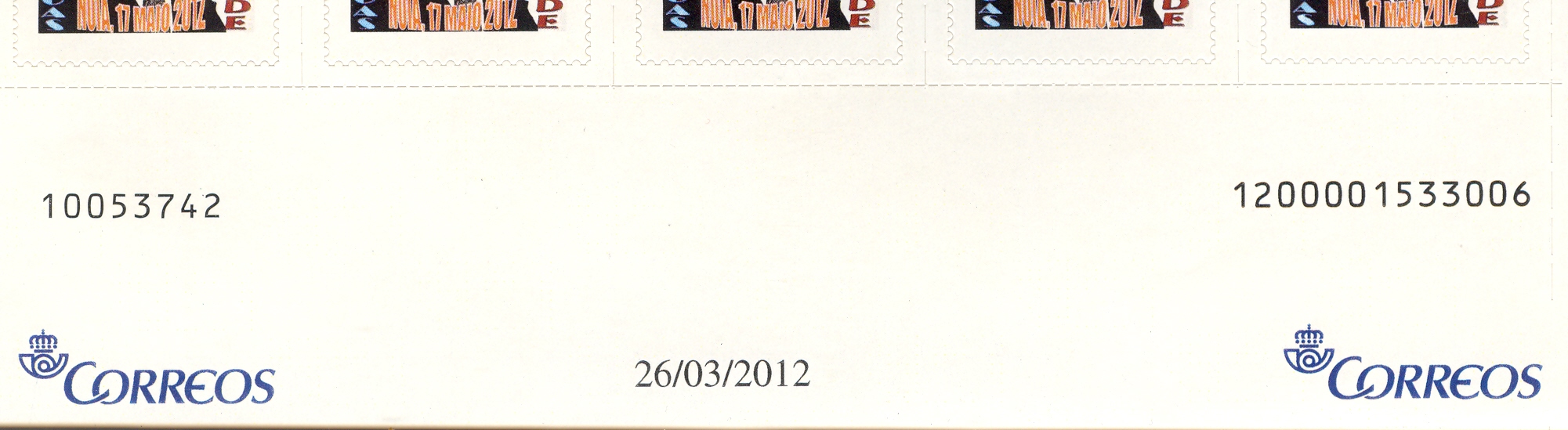 Por otra parte, y contestando a la pregunta del amigo Alfareva, yo que suelo solicitar varios sellos perdonalizados, he sacado esta conclusión con relación a las dos numeraciones de los pliegos. La más importante es la de la derecha, pues, las 2 primeras cifras son del año (12), las 8 siguientes del nº del sello, que comienzan cada año por el 1, y las 3 últimas cifras del nº de pliegos de dicho sello que se ha solicitado. Ahora mismo vamos por el nº 1.986.