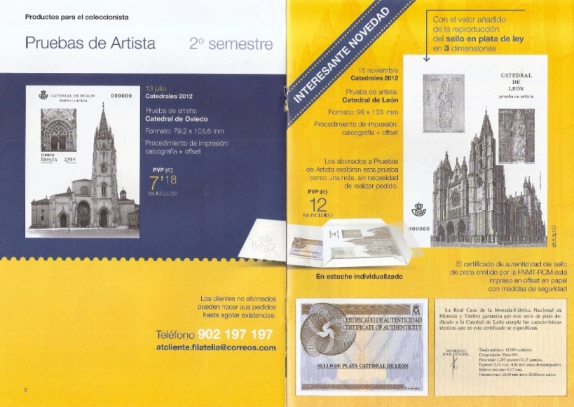 La prueba de artista de la Catedral de Toledo que el Servicio Filatélico ha remitido a los abonados junto con las emisiones del segundo trimestre del año 2012, ha venido dentro de una carpetilla protectora, creada ad hoc, con una hojita protectora.