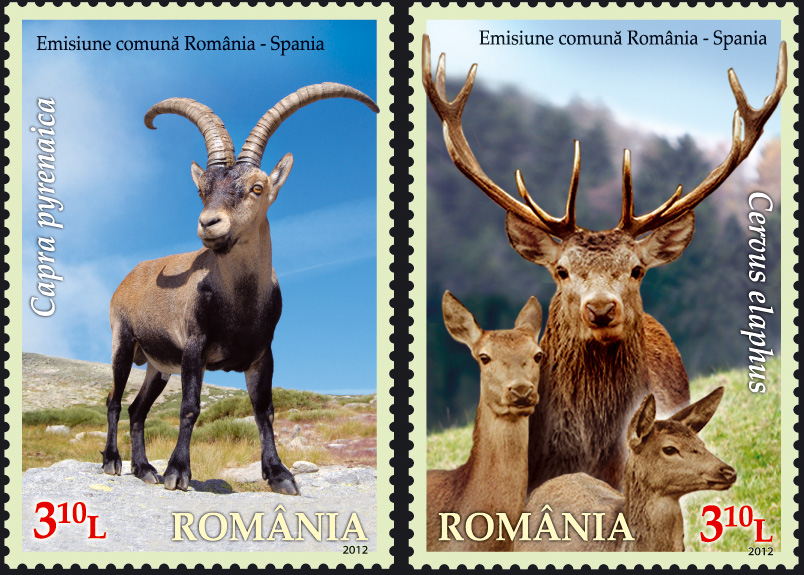 La serie, emitida conjuntamente por Rumanía y España, consta de dos sellos dedicados, respectivamente, a la Cabra Montés y al Ciervo Rojo de los Cárpatos