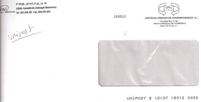 En este caso, añadimos que aparecen dos empresas por un lado la etiqueta de SUC y por otro UNIPOST, me quiero imaginar algún tipo de acuerdo comercial entre ellas para entregar en una determinada zona, o para aprovechar los carteros, etc, etc.