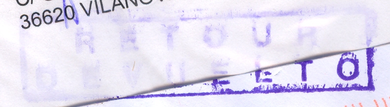 RETOUR / DEVUELTO (color azul) (utilizada en Vilanova de Arousa, Pontevedra, el 17/10/2012)