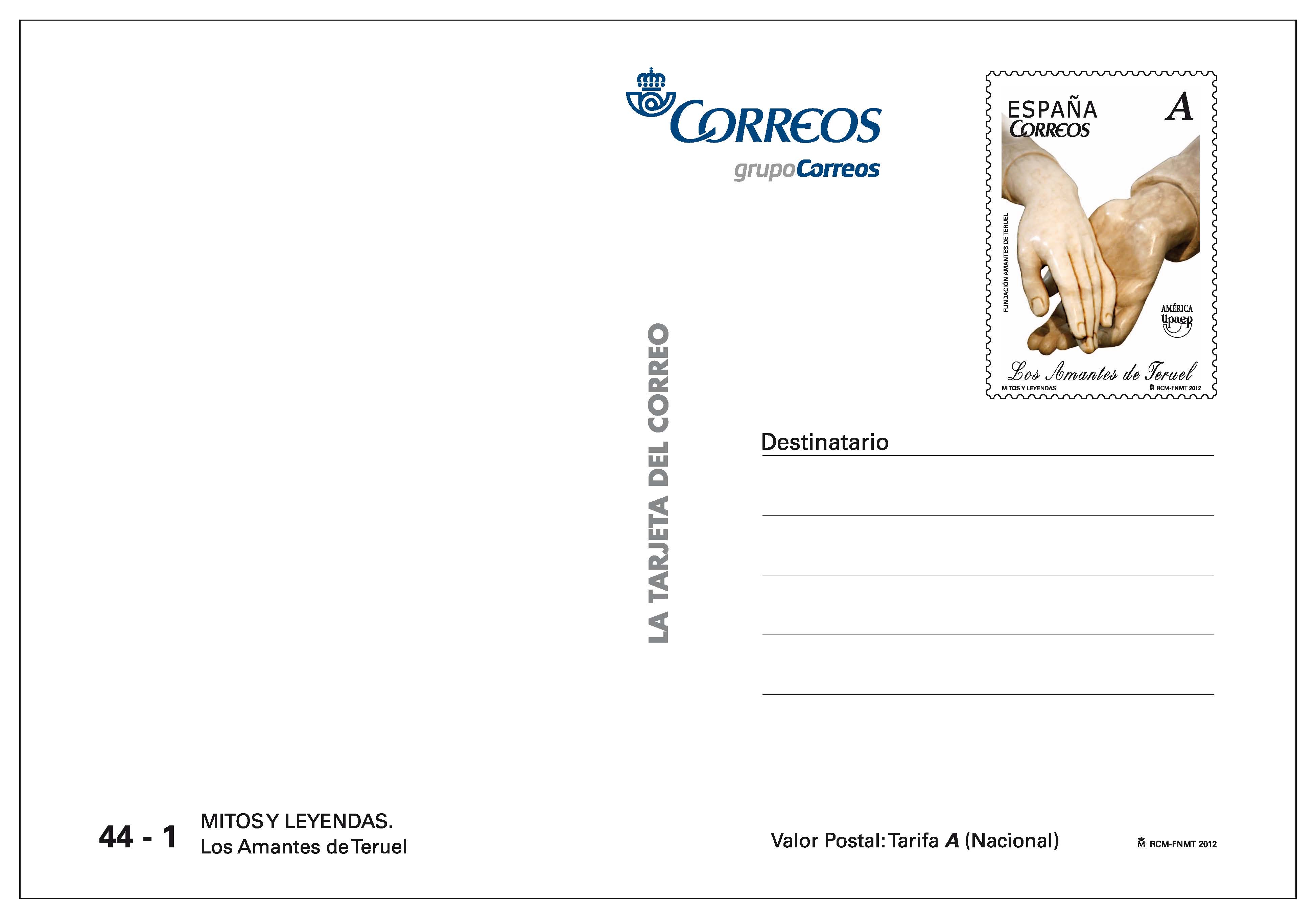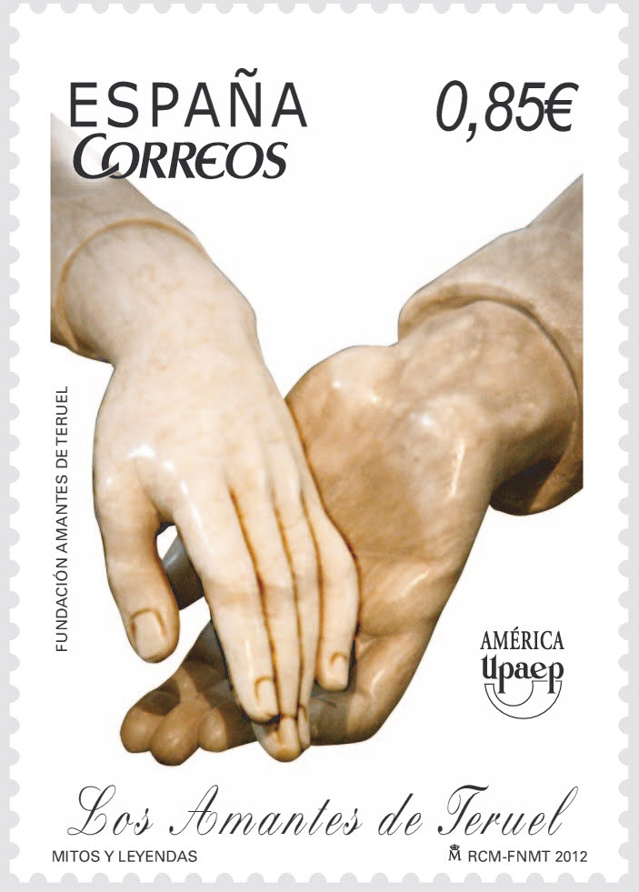 El signo de franqueo reproduce el sello de correo dedicado a «Los Amantes de Teruel» que se emite el mismo día dentro de la serie «América UPAEP.–2012. Mitos y Leyendas».