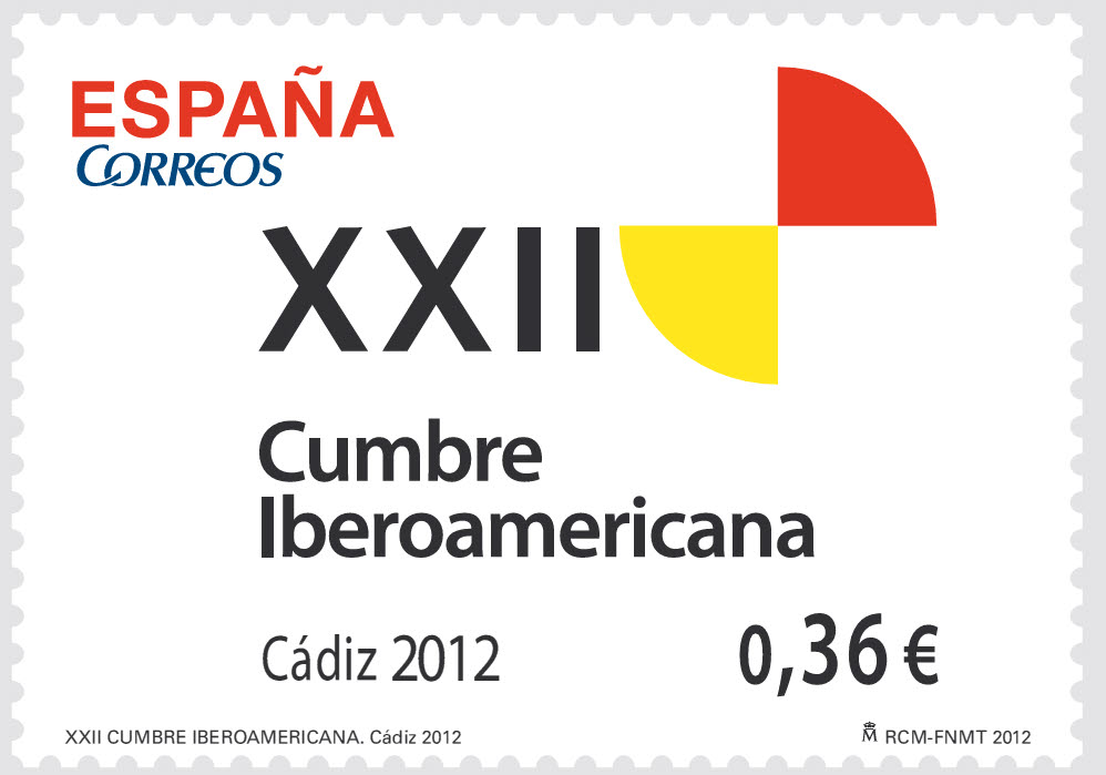 El sello es conmemorativo de la reunión que tendrá lugar en Cádiz durante los días 16 y 17 de noviembre, entre los Jefes de Estado y de Gobierno de los países de América Latina y Europa de lengua hispana y portuguesa.