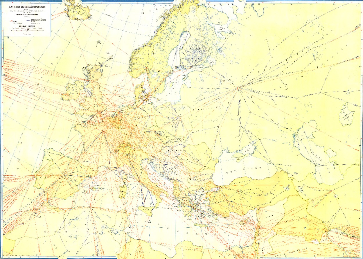 U.P.U., Mapa de líneas aeropostales europeas, 1953.