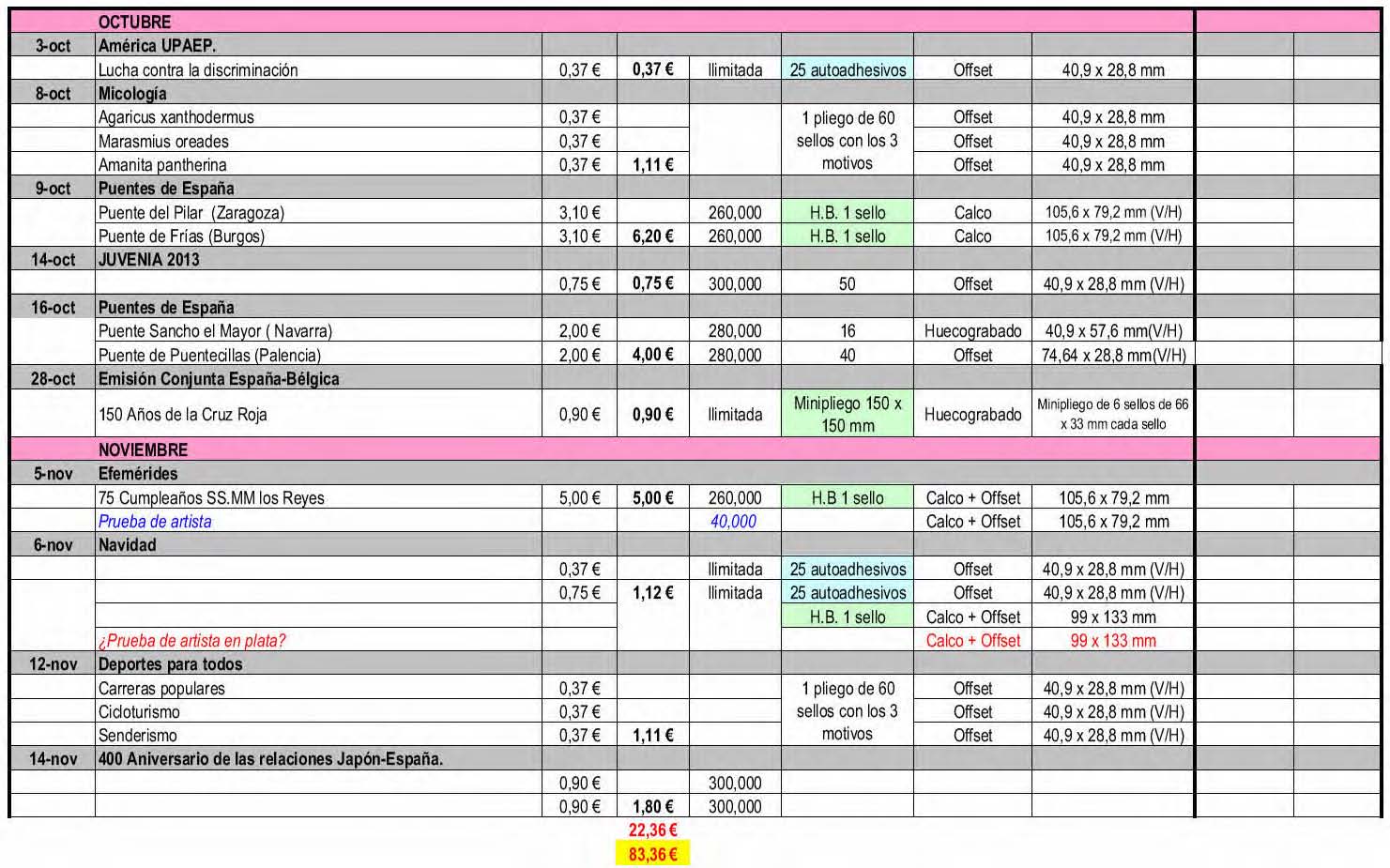 Acaba de publicarse, en la web de Correos, el programa de emisiones (completo) para 2013.