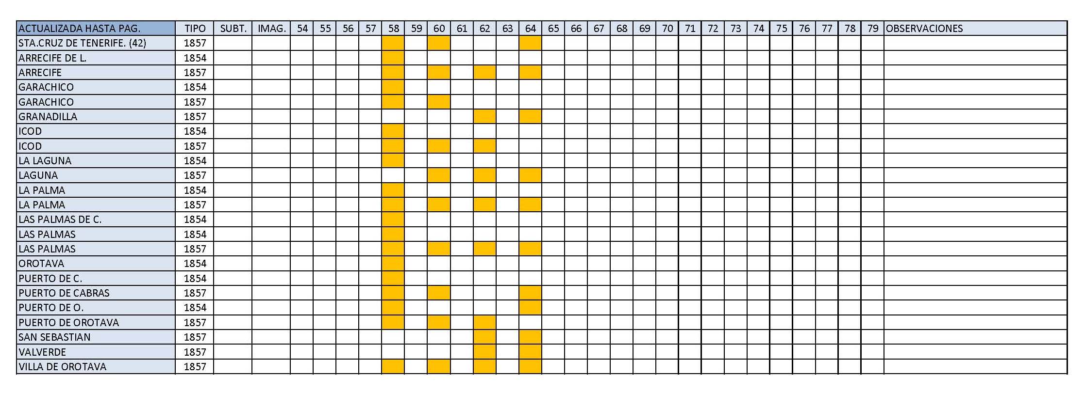 Cuando la imagen sea muy buena, la marcaremos en amarillo como definitiva, con independencia de que posteriormente pueda aparecer una mucho mejor o limpia sobre carta. En los fechadores de 1854 solo pondremos VH, para indicar que hay que buscar el hilo correspondiente.