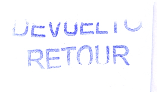 RETOUR - DEVUELTO (color violeta) (utilizada el 30/10/2012 en Mataró, Barcelona)