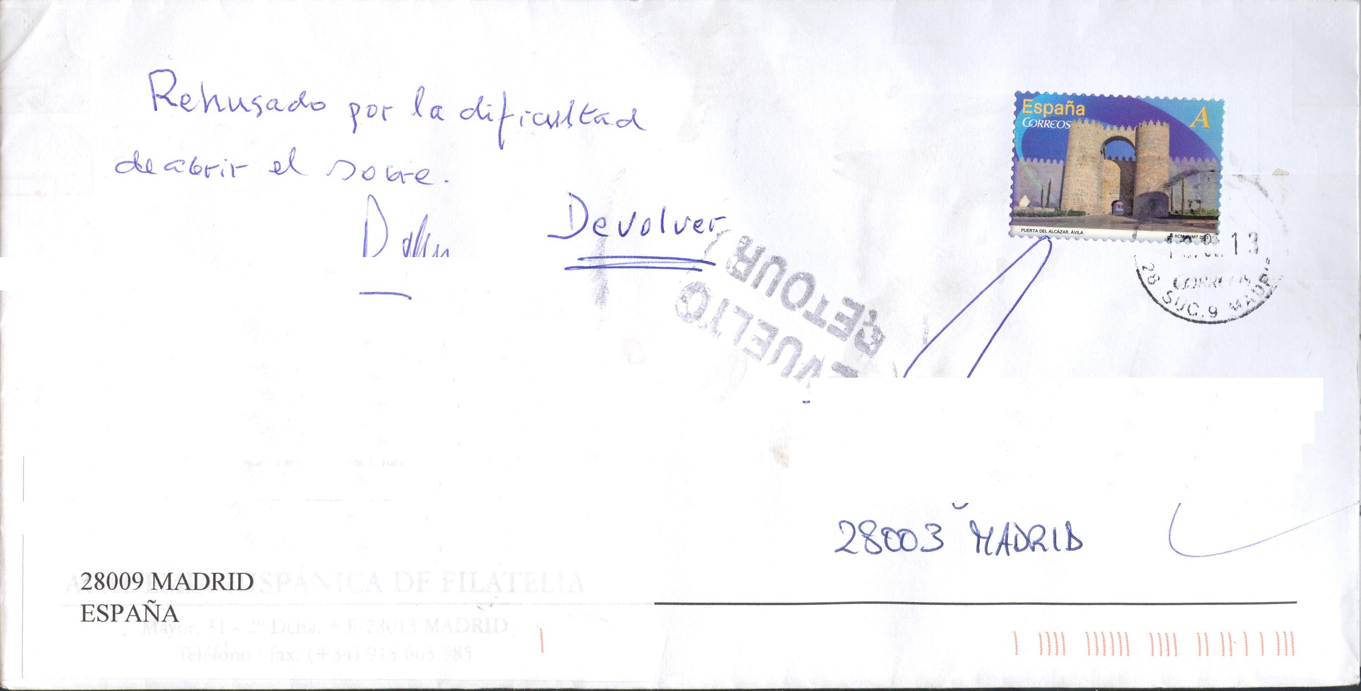 Ahora bien, lo que nunca había encontrado es ver que se rehúsa la recepción de una carta, enviada por correo normal, "por la dificultad de abrir el sobre"(sic).