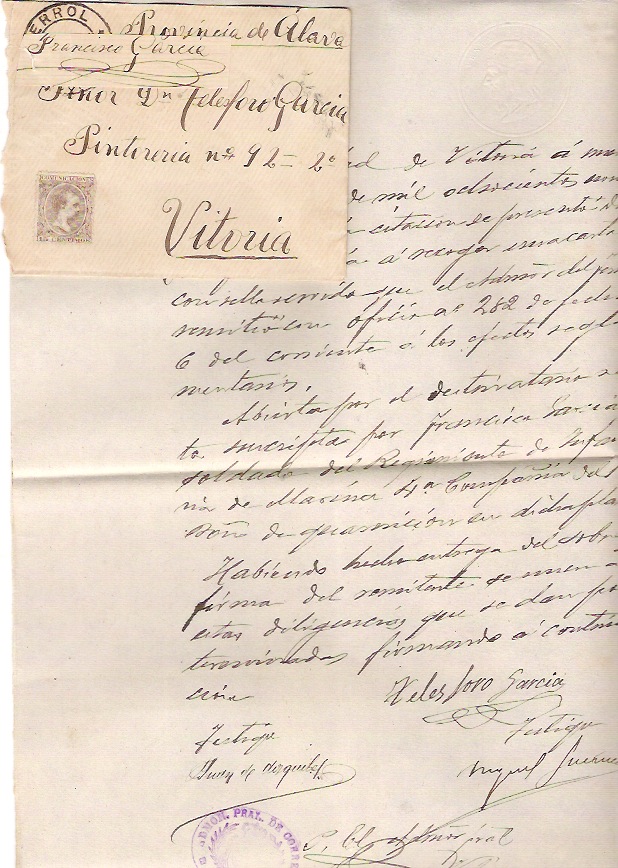 Tampoco parece muy plausible que, casi un año después, el remitente creyese que seguía existiendo el Impuesto de Guerra y abonase el mismo con un sello normal de 5 céntimos, más el supuesto derecho de certificado de 25 céntimos, más un cuádruple porte.