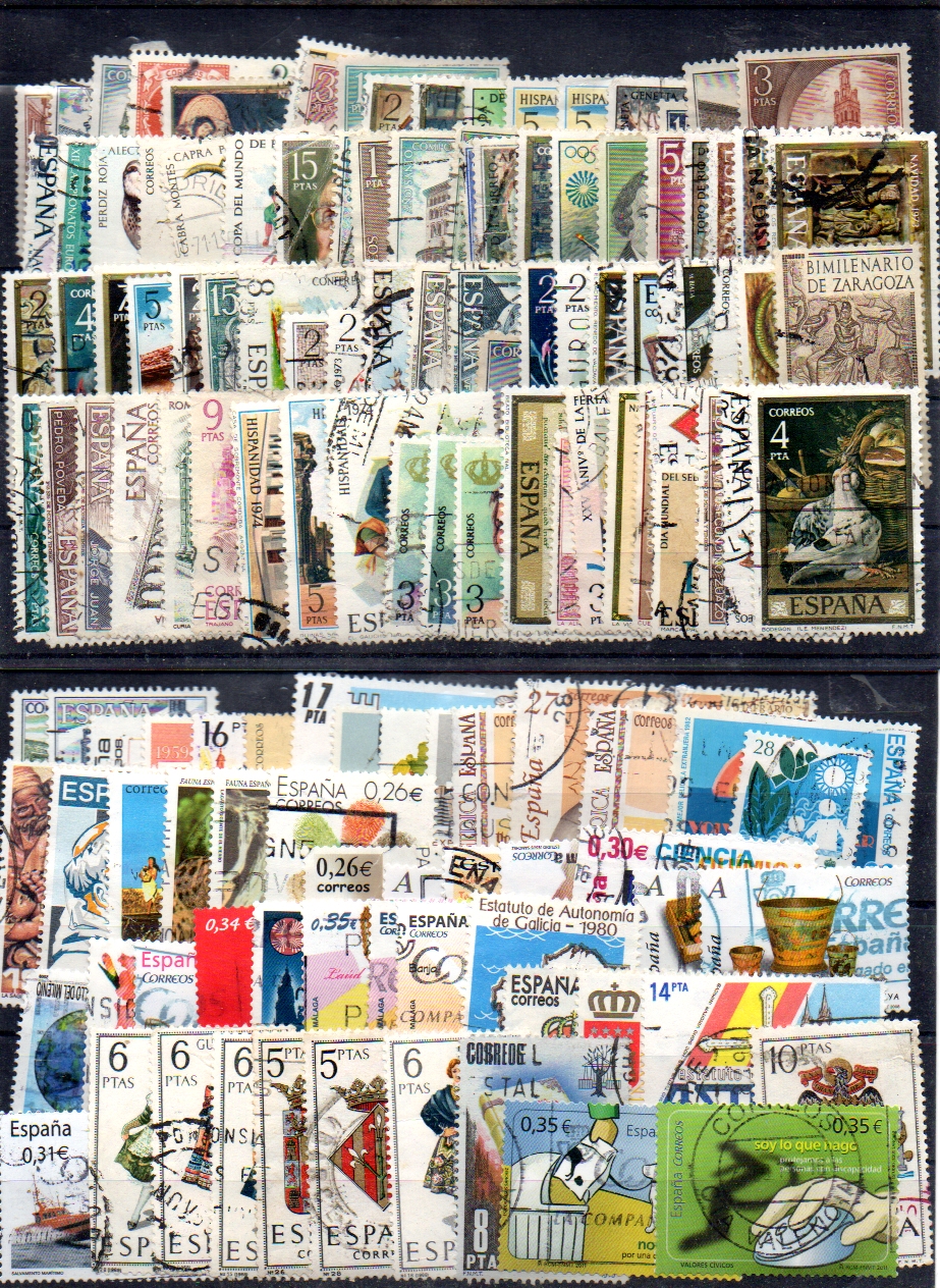 Dos fichas con un total de más de 125 sellos españoles usados diferentes