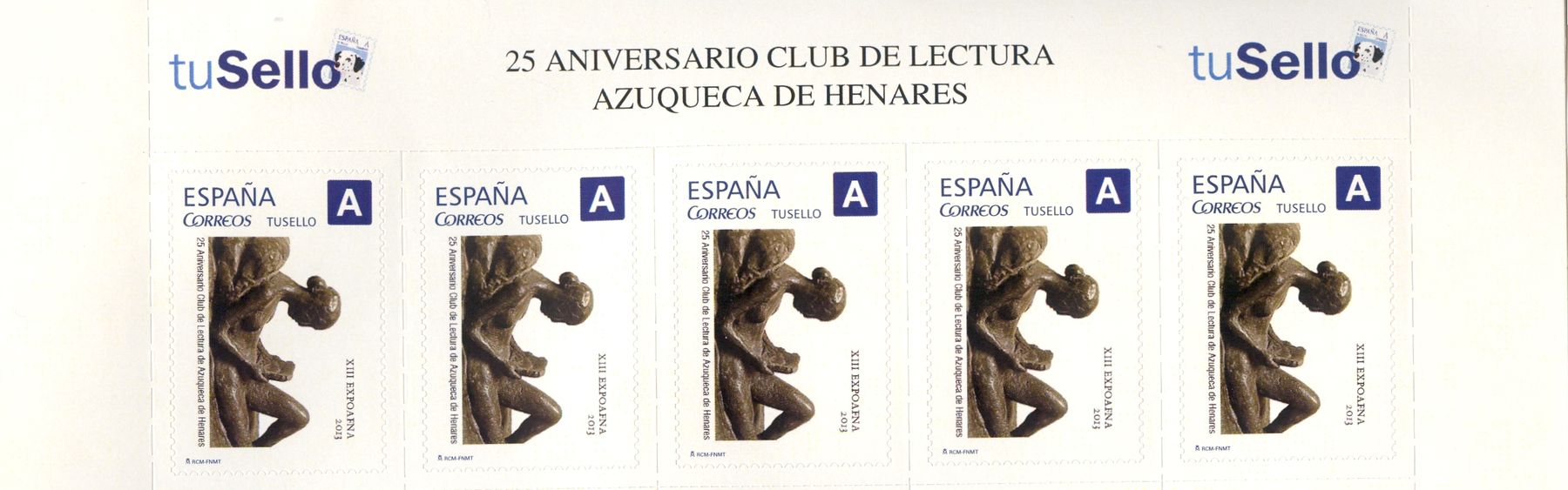 Con ocasión de la celebración de la Exposición de Filatelia y Numismática "13.ª EXPOAFNA del Coleccionismo" en homenaje al 25 Aniversario del Club de Lectura, la Asociación Filatélico-Numismática de Azuqueca de Henares ha emtido un nuevo sello personalizado.