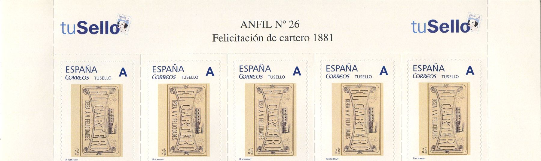 El primero de ellos hace el número 26 de su colección y se titula: "Felicitación de cartero 1881".